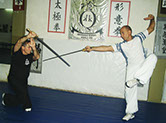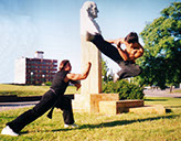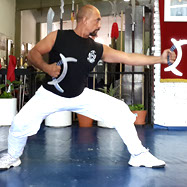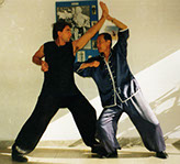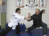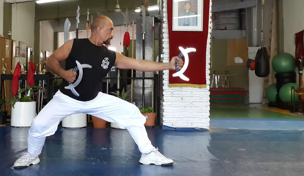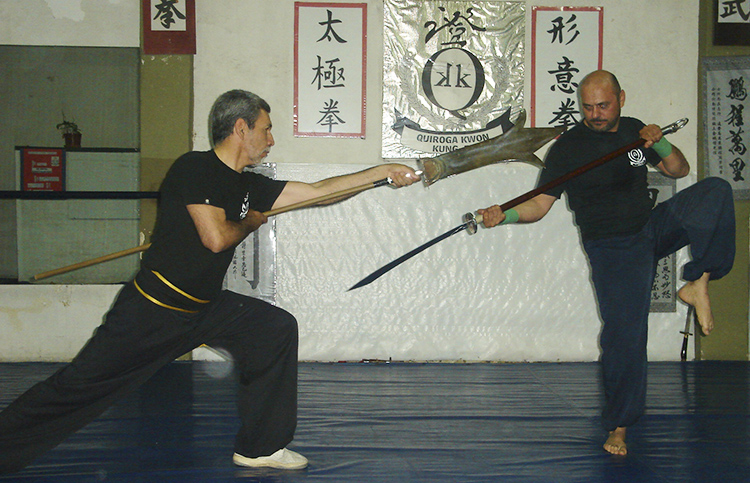 Sifu Quiroga con más de 47 años de práctica y de profesión: Comisario de Policía, trata de trasladar su experiencia de enfrentamientos reales a la práctica del combate.