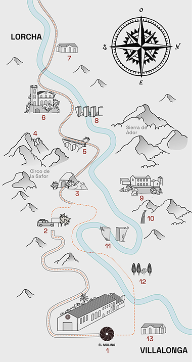 UBICACIÓN ESTRATÉGICA El Molino es la majestuosa puerta de entrada a dos rutas de gran valor y belleza que se adentran en el Barranco del Infierno y conectan con la Vía Verde del Serpis